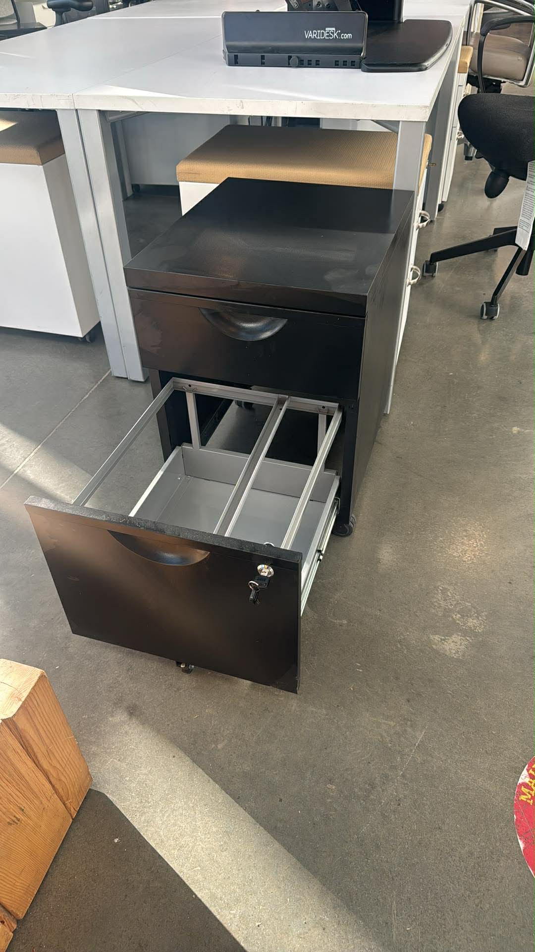 Professional-grade IKEA ERIK storage pedestals in black. These are solid, metal under-desk drawer units commonly used in corporate offices and home workspaces. Clean look, durable build, and very functional storage.