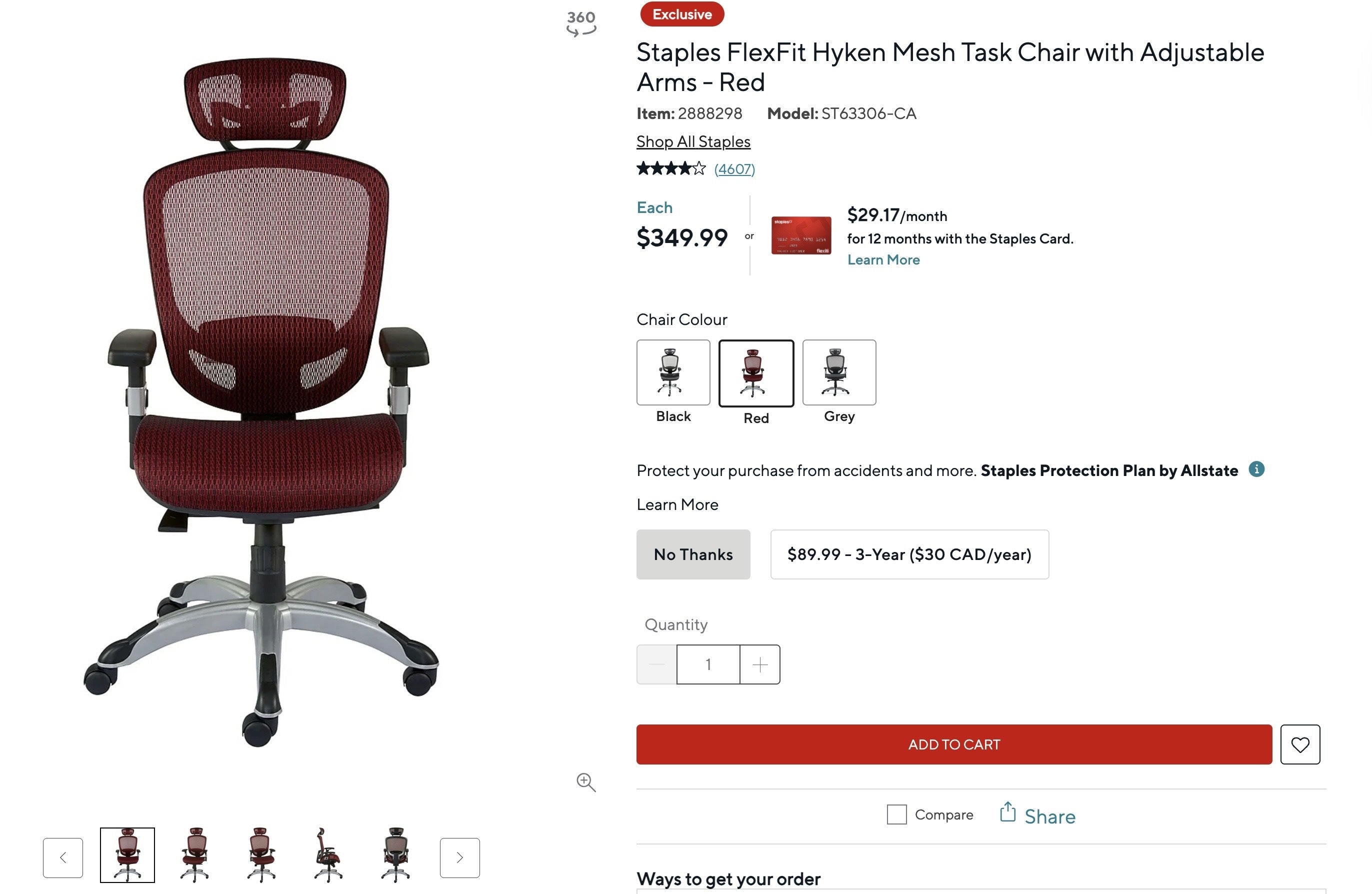 Work in comfort and style with the Staples Hyken ergonomic office chair, a top-rated mesh task chair built for all-day support. Its breathable mesh back and seat promote airflow, while the adjustable headrest and lumbar support keep you aligned and comfortable through long work sessions.