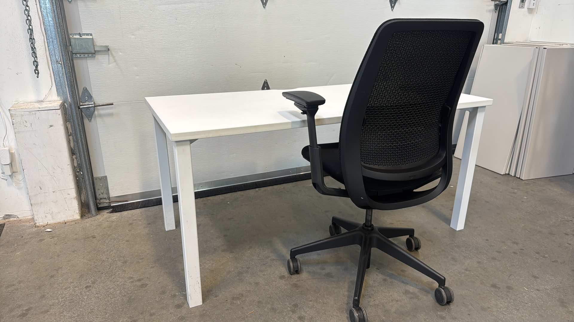 Modern white finish with white post legs. Looks great as an individual desk or in pods of 2-4-6 etc.