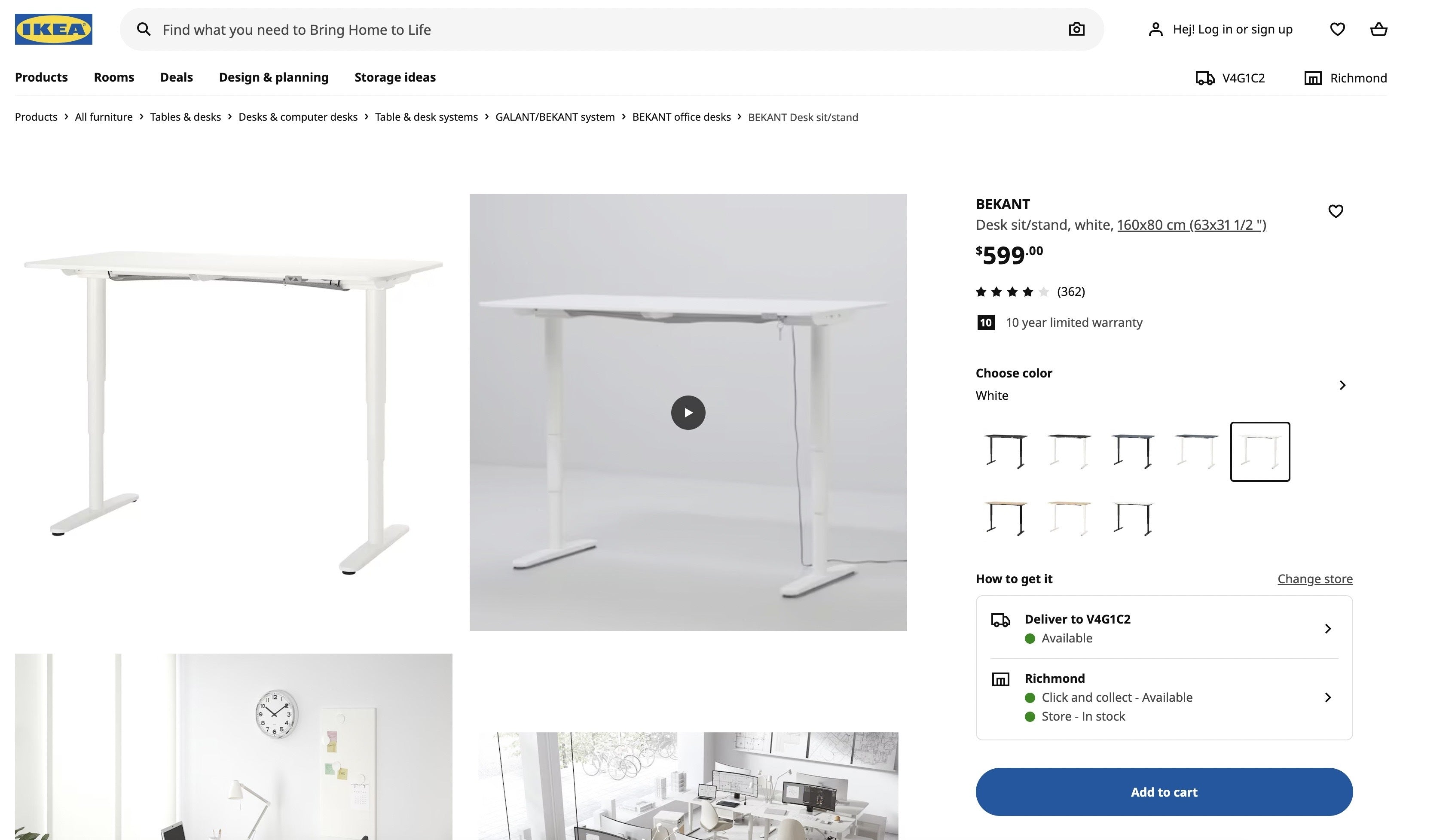 You can adjust the height of the table top electrically from 22" to 48" to ensure an ergonomic working position.
