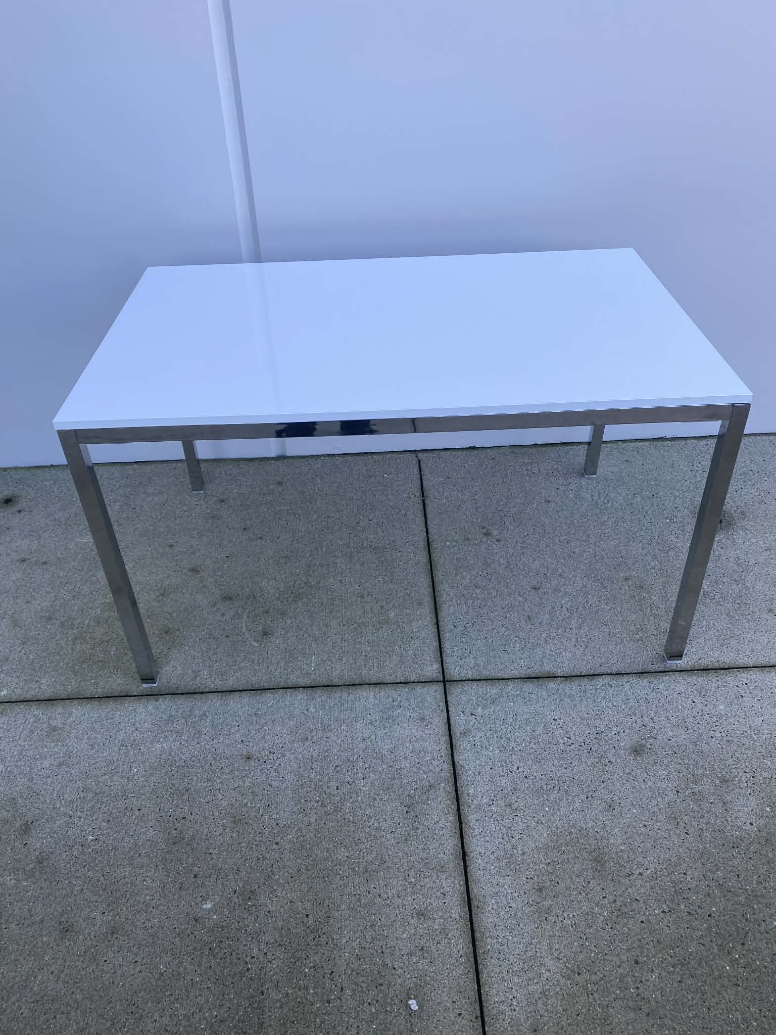 The high-gloss surface reflects the light and gives the table a vibrant look. The sturdy chrome frame makes it shine.