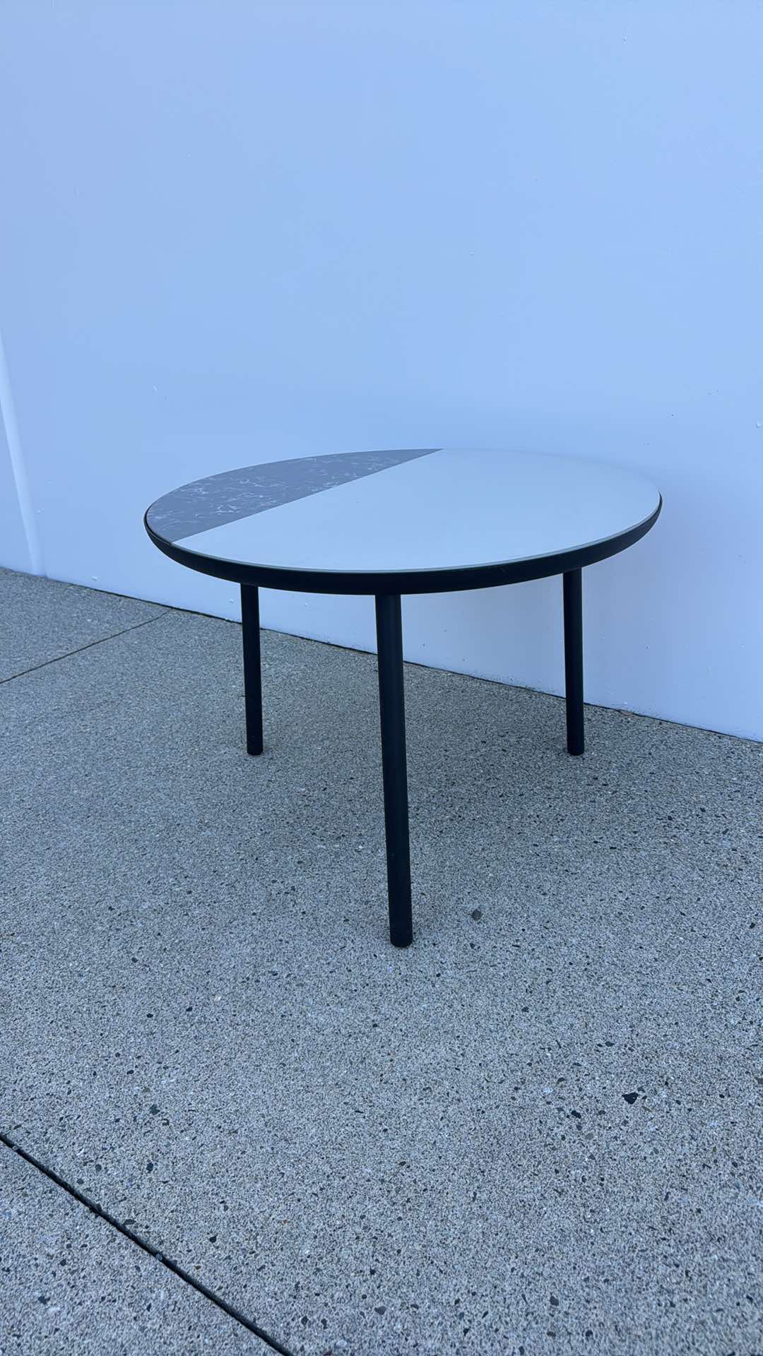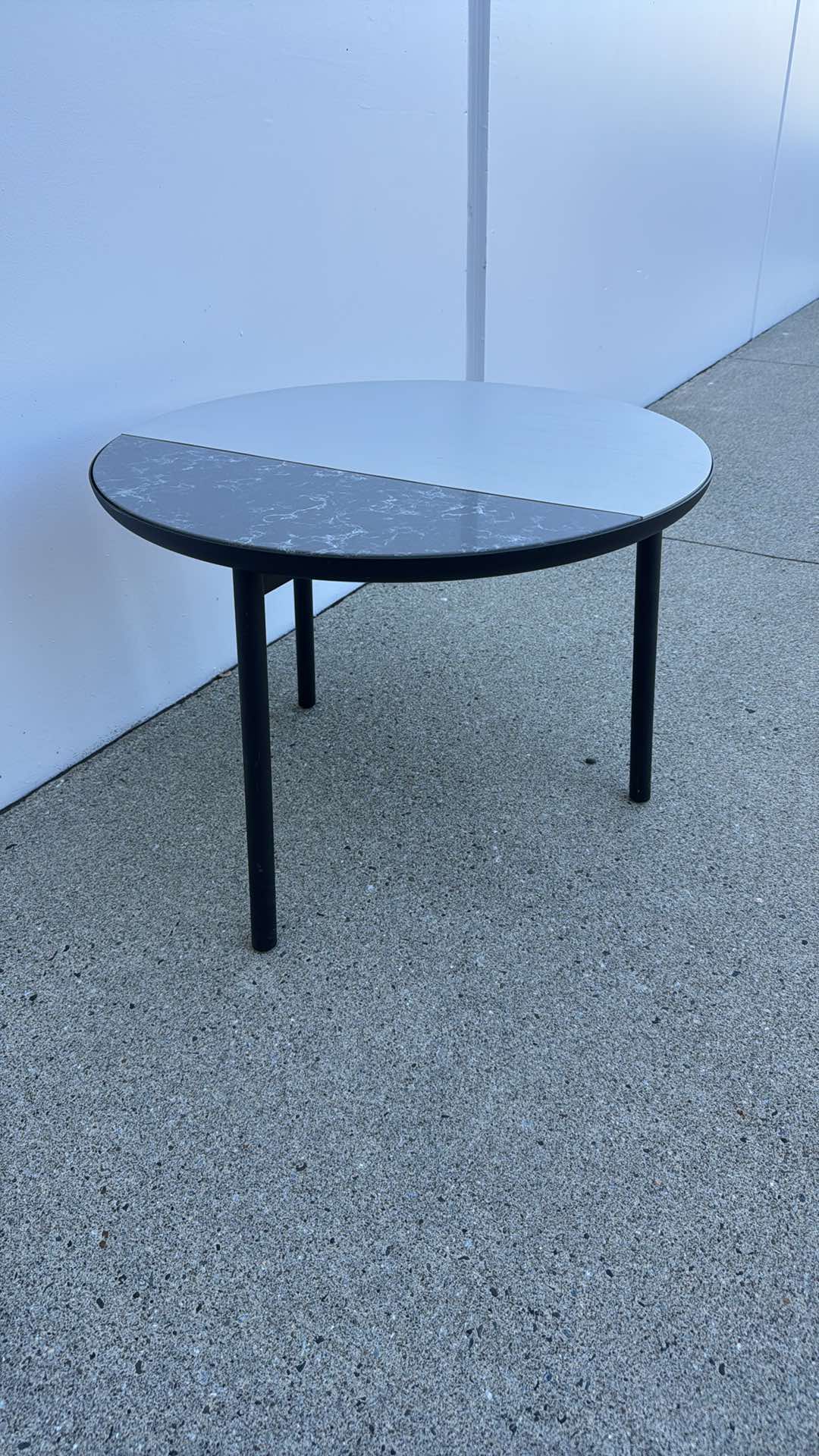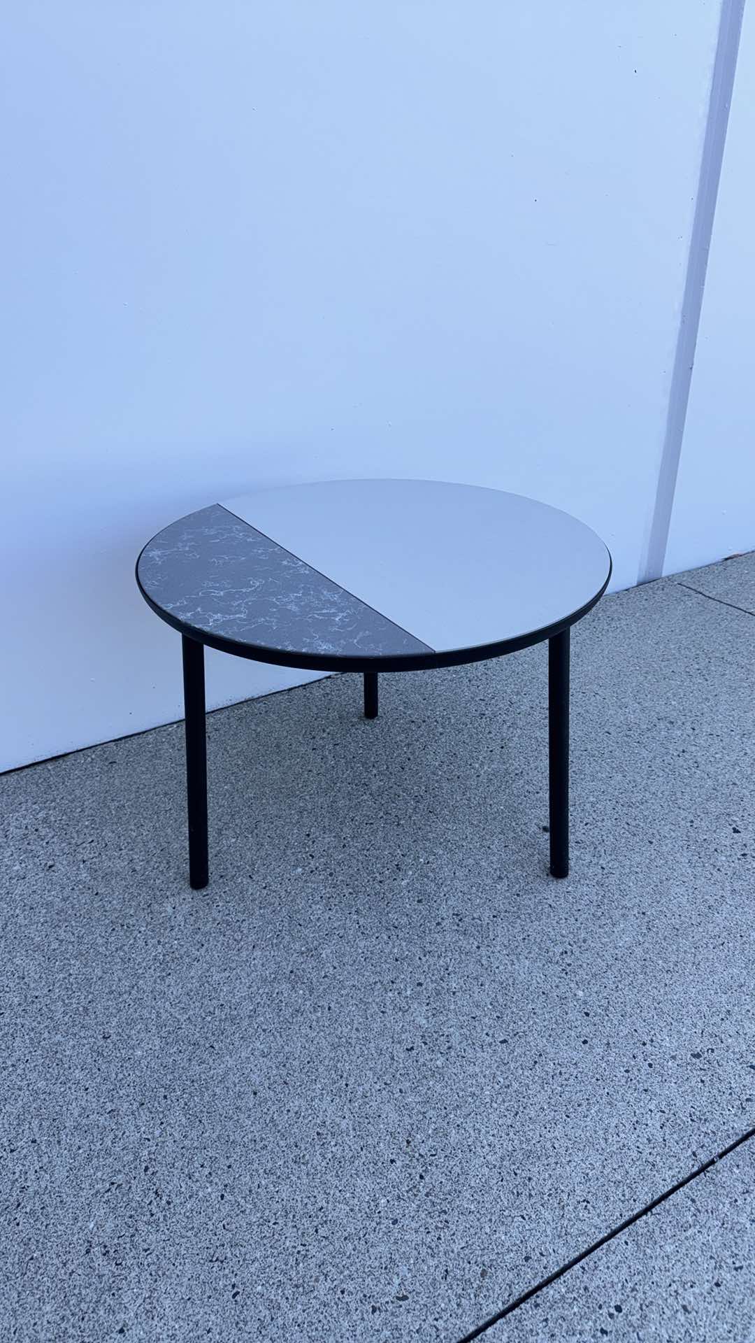 Wood finish with quarter marble finish. Very high end designer table. Over $1,200 USD brand new.