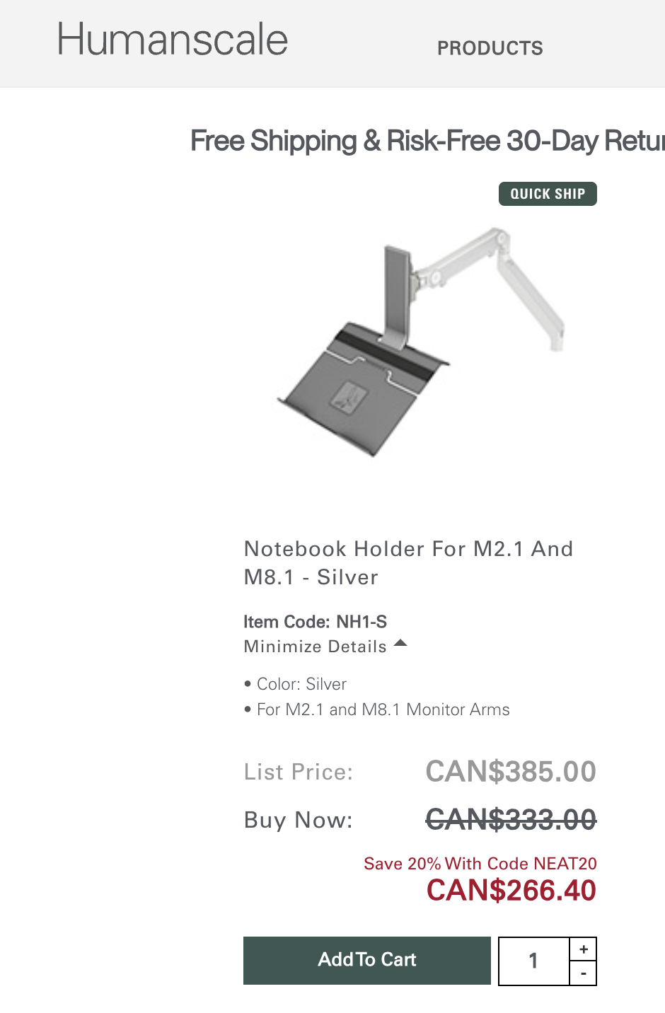 NEW - Humanscale Notebook Holder for M2.1 & M8.1 Monitor Arms