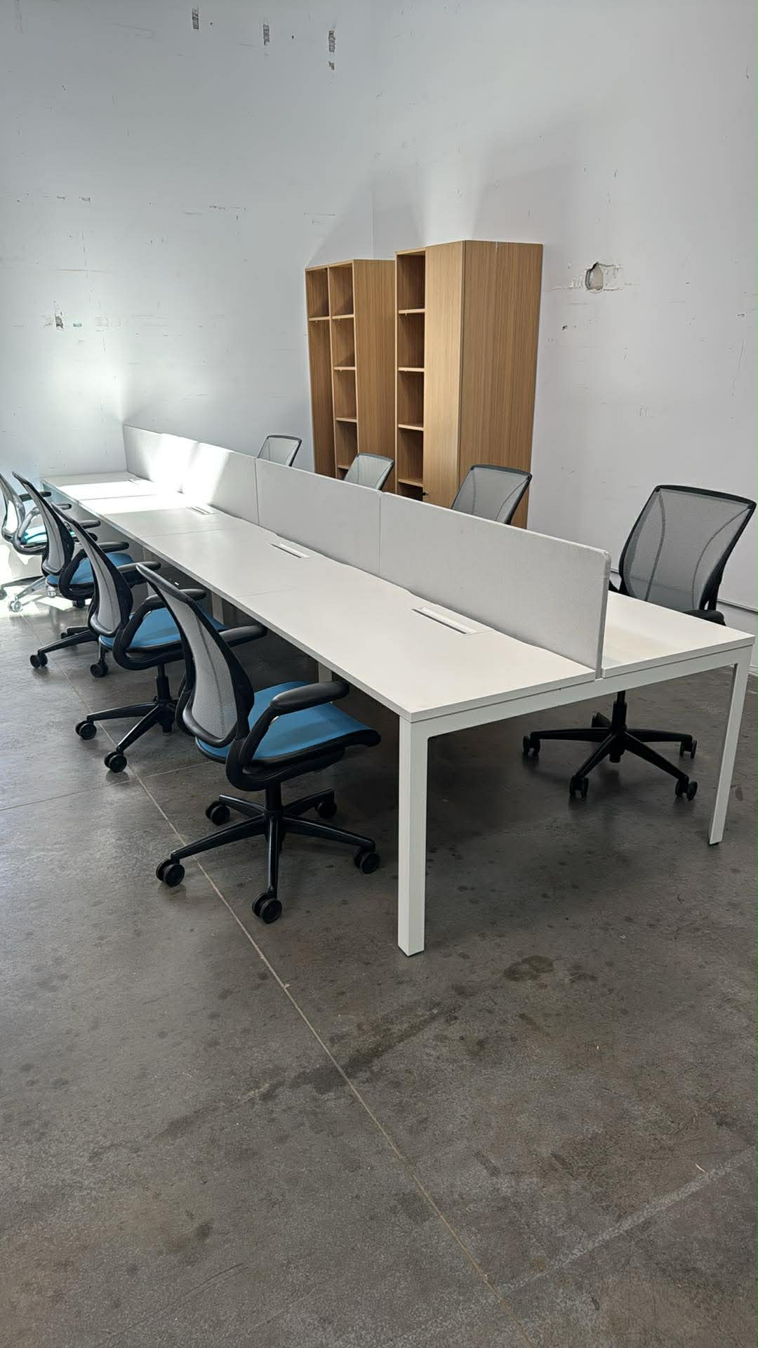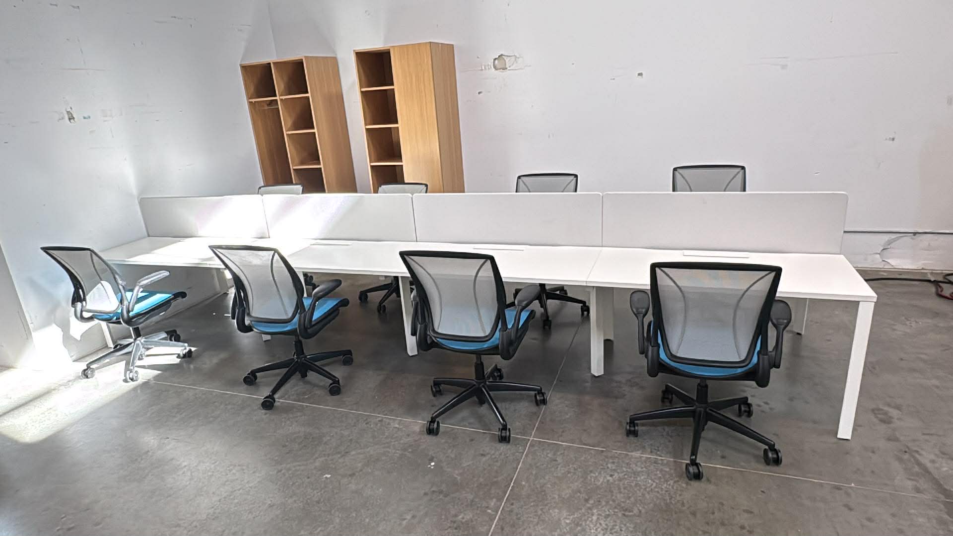 Maximize your office productivity with this premium Herman Miller Layout Studio workstation. This 8-desk configuration features a minimalist, open-office aesthetic with integrated power and privacy screens. Engineered by Herman Miller in the USA (Manufactured 2019), these are built for long-term commercial use.
