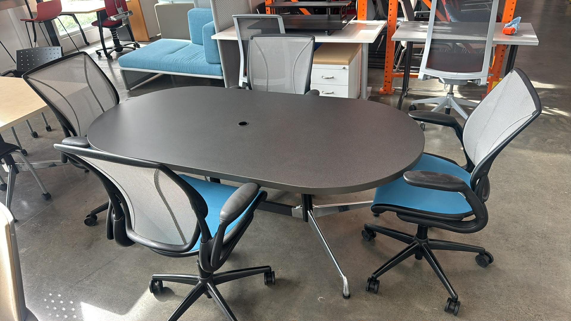 Surface: Premium Steelcase Dark Grey Laminate with a sleek profile.