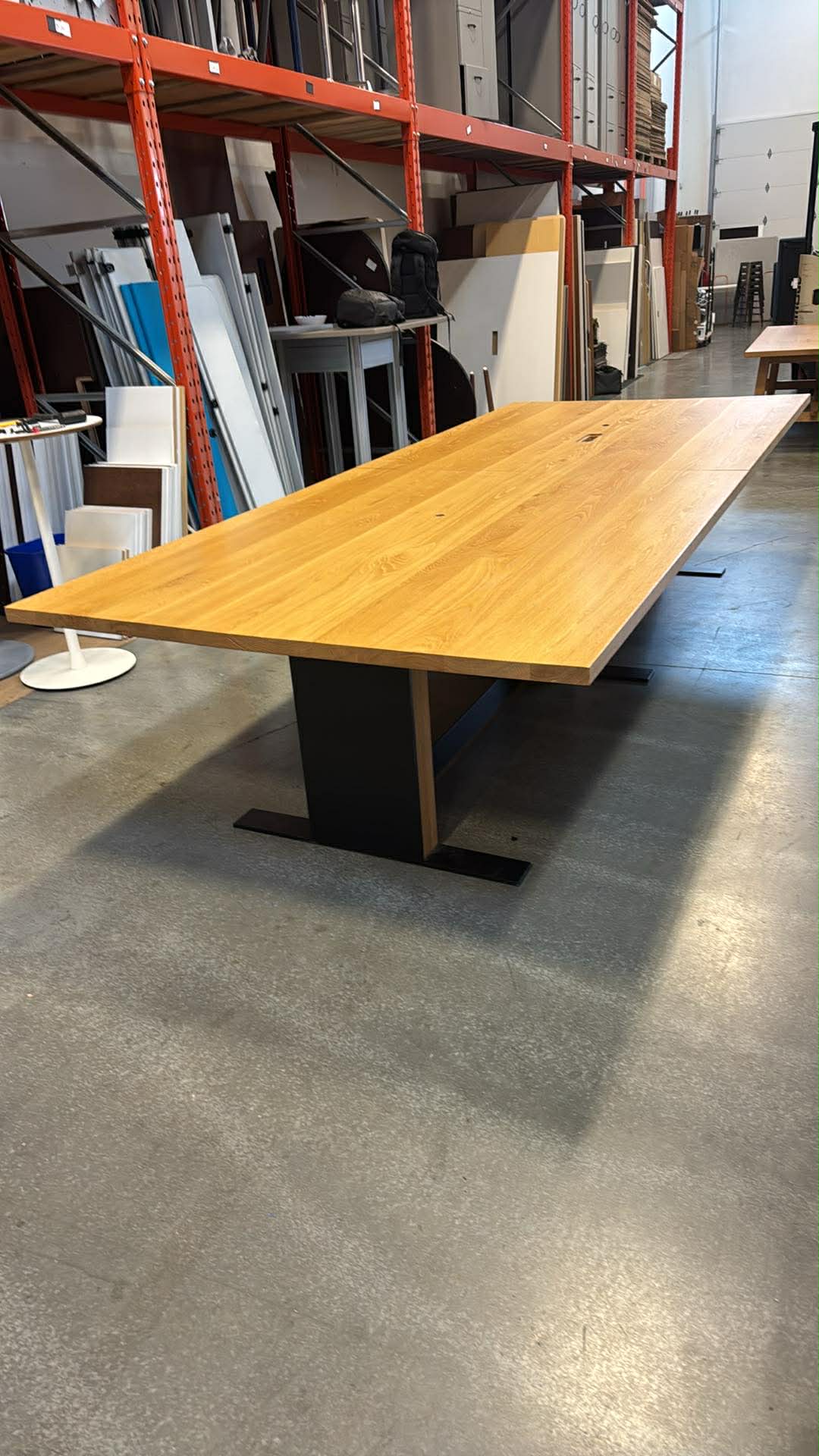 This is a substantial, statement-making table built for serious meetings—not lightweight or residential furniture.