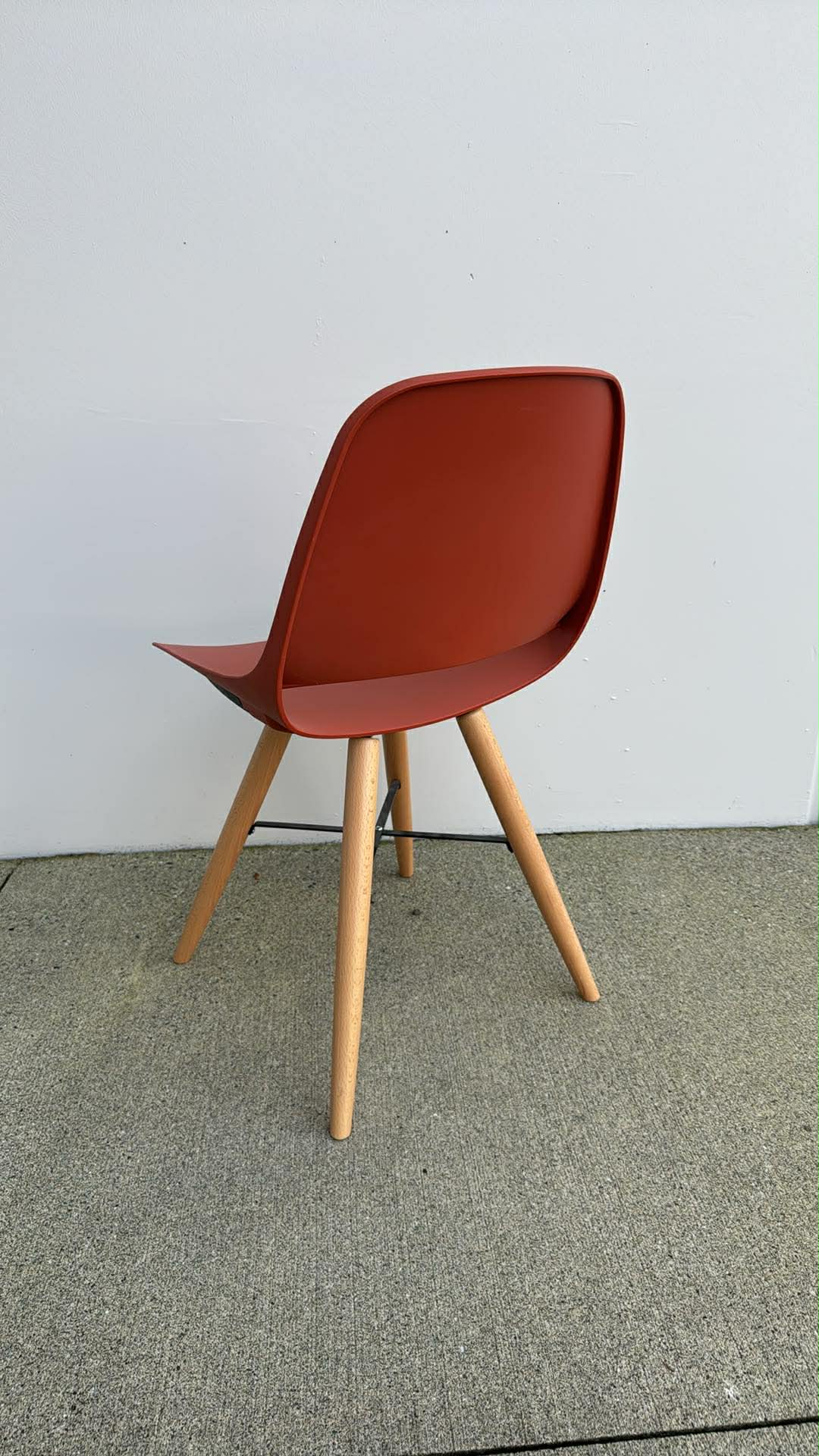 Sculptural designer chair from the Eclipse collection, designed by Angelo Pinaffo. This chair features a fluid, modern silhouette paired with solid wood legs, making it a strong fit for contemporary interiors, dining spaces, meeting rooms, lounges, or reception areas.