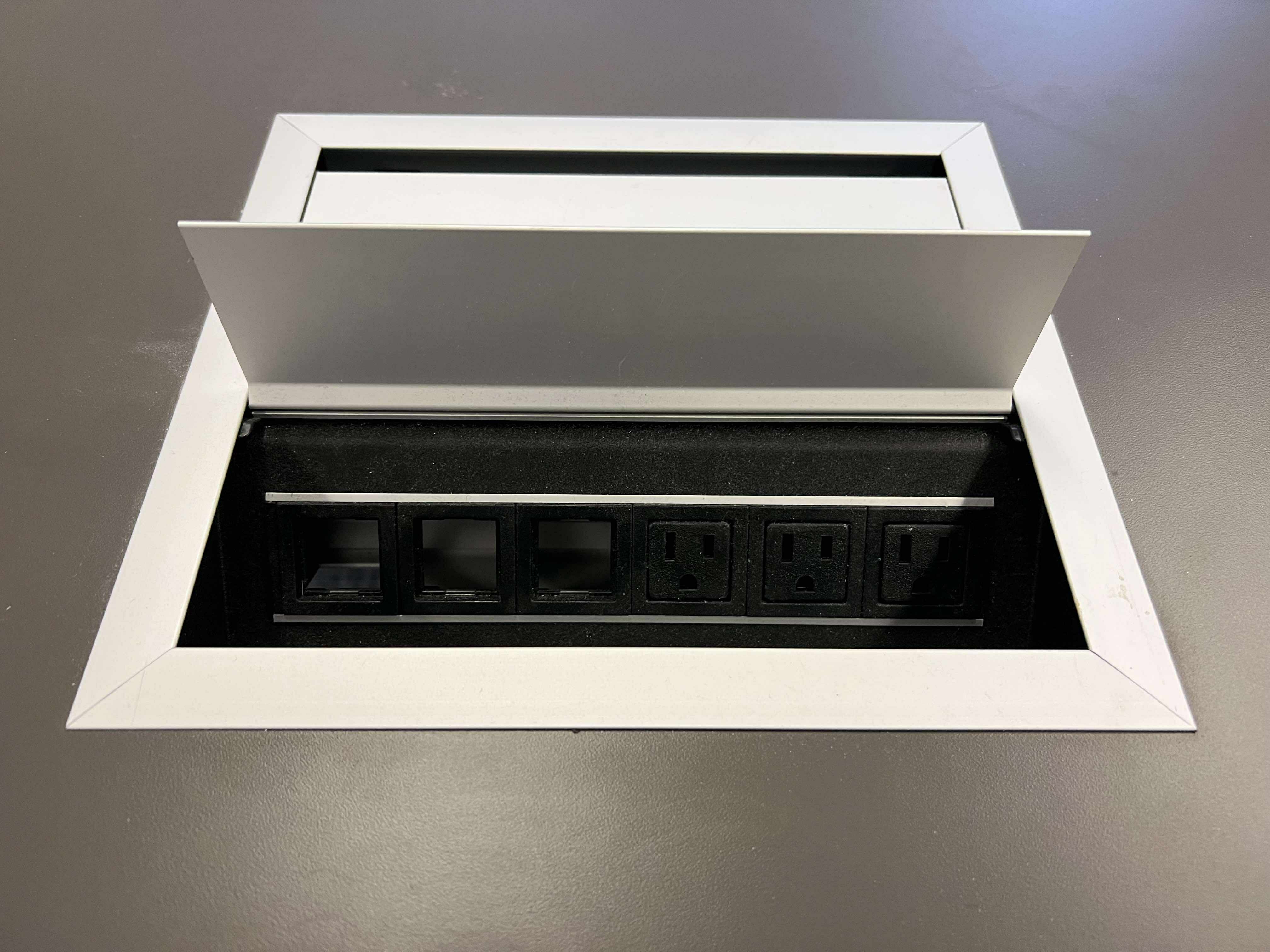 Power/Data: Integrated power modules with outlets and data ports (see photos)