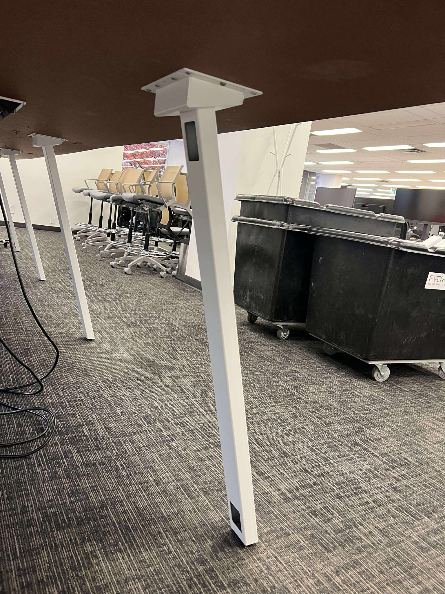 The Equilibrium series combines sleek architectural lines with exceptional strength and durability. The angled post legs create a clean, modern aesthetic while maintaining structural rigidity, ideal for large collaborative spaces, meeting rooms, or shared work zones.