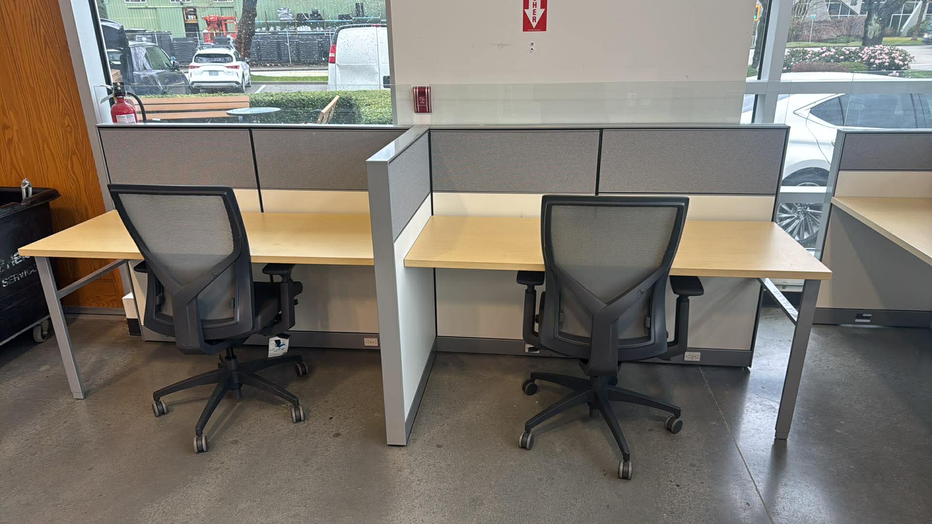 Enhance your office productivity with the Herman Miller Canvas series. This 2-person side-by-side pod offers a clean, architectural aesthetic with heavy-duty construction. Designed for high-performance environments, these stations feature integrated privacy screens and a comprehensive under-desk power system to keep your workspace clutter-free and fully connected.