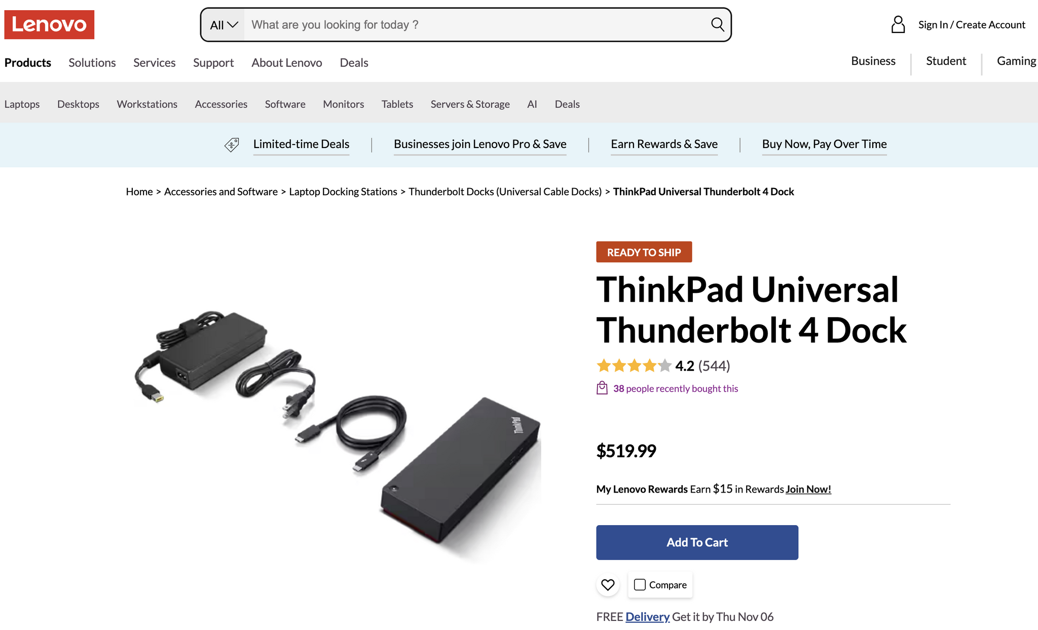 Unlock full workstation capability with the premium Lenovo ThinkPad Thunderbolt 4 Workstation Dock. Designed for serious performance, this dock delivers massive connectivity, up to 230 W power delivery to your laptop, and multi-display support — all through a single Thunderbolt 4 cable.
