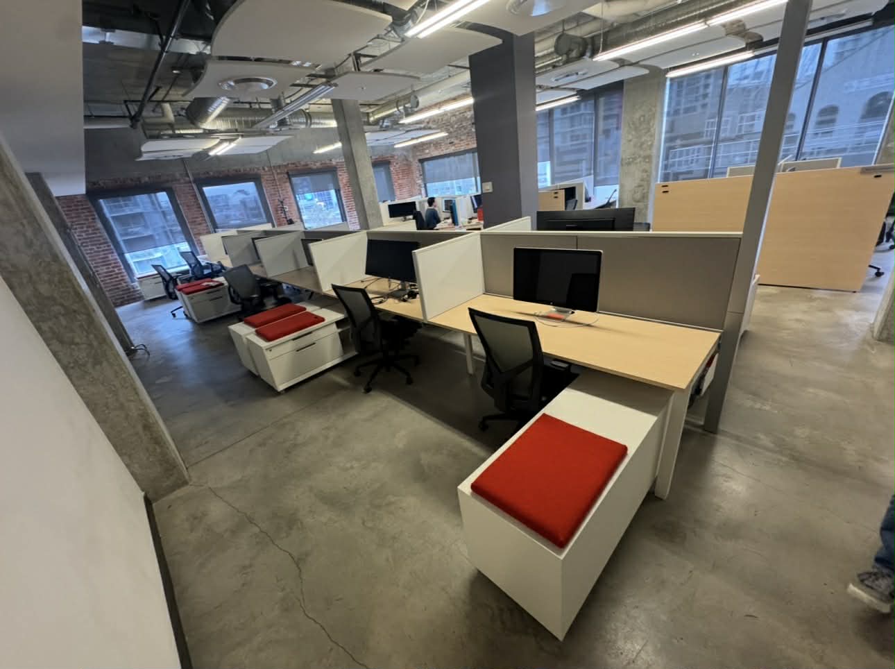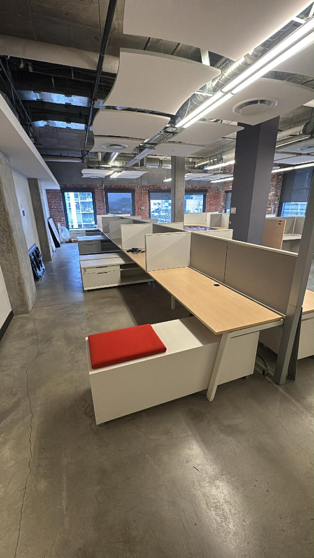 Maximize your square footage without sacrificing the high-end look of your office. The Teknion District series is inspired by mid-century modern furniture, utilizing a low-profile credenza support system rather than traditional desk legs. This 12-person "megapod" offers a clean architectural horizon and massive integrated storage for every user.