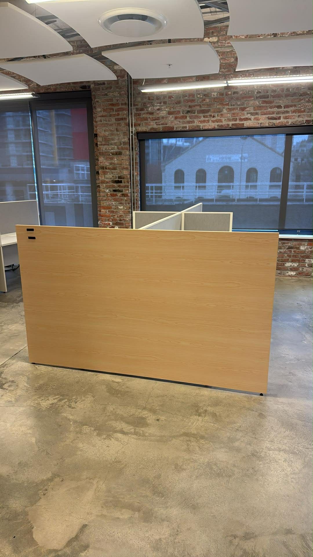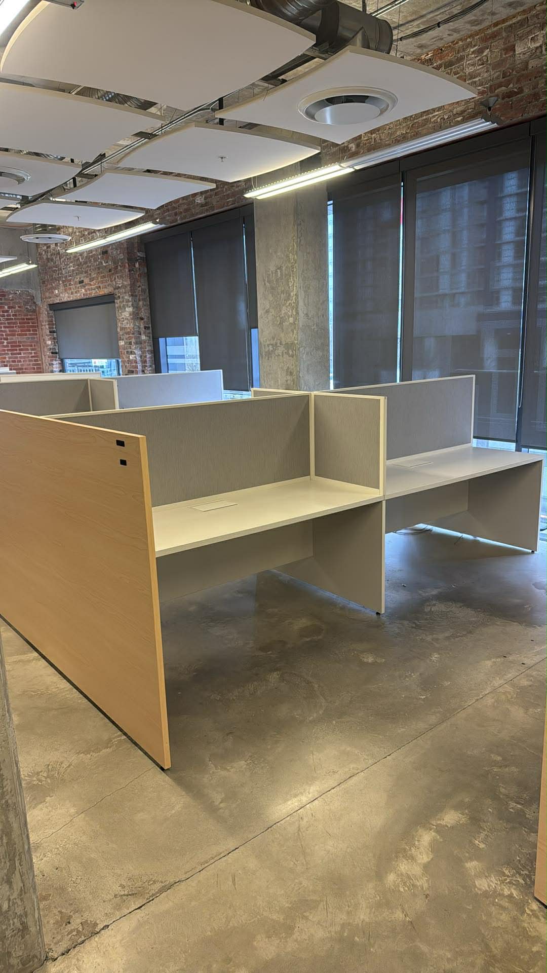 Individual Desk Size: 66"W x 24"D Privacy Panels: 7' Long architectural wood side gables.