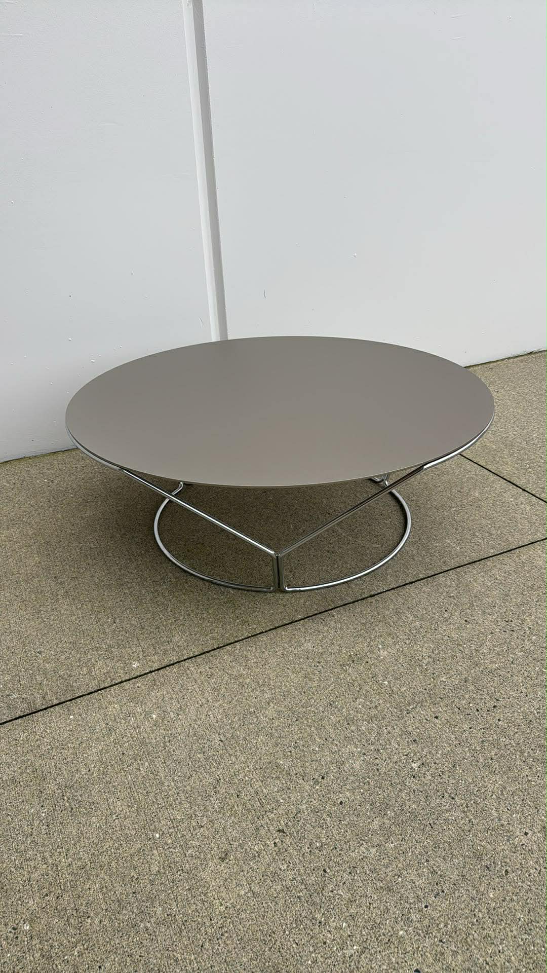 High-end modern coffee table from Keilhauer’s Cahoot collection, designed for premium corporate, hospitality, and architectural interiors. This is the 37” round aluminum version, not laminate — the most expensive configuration in the series.