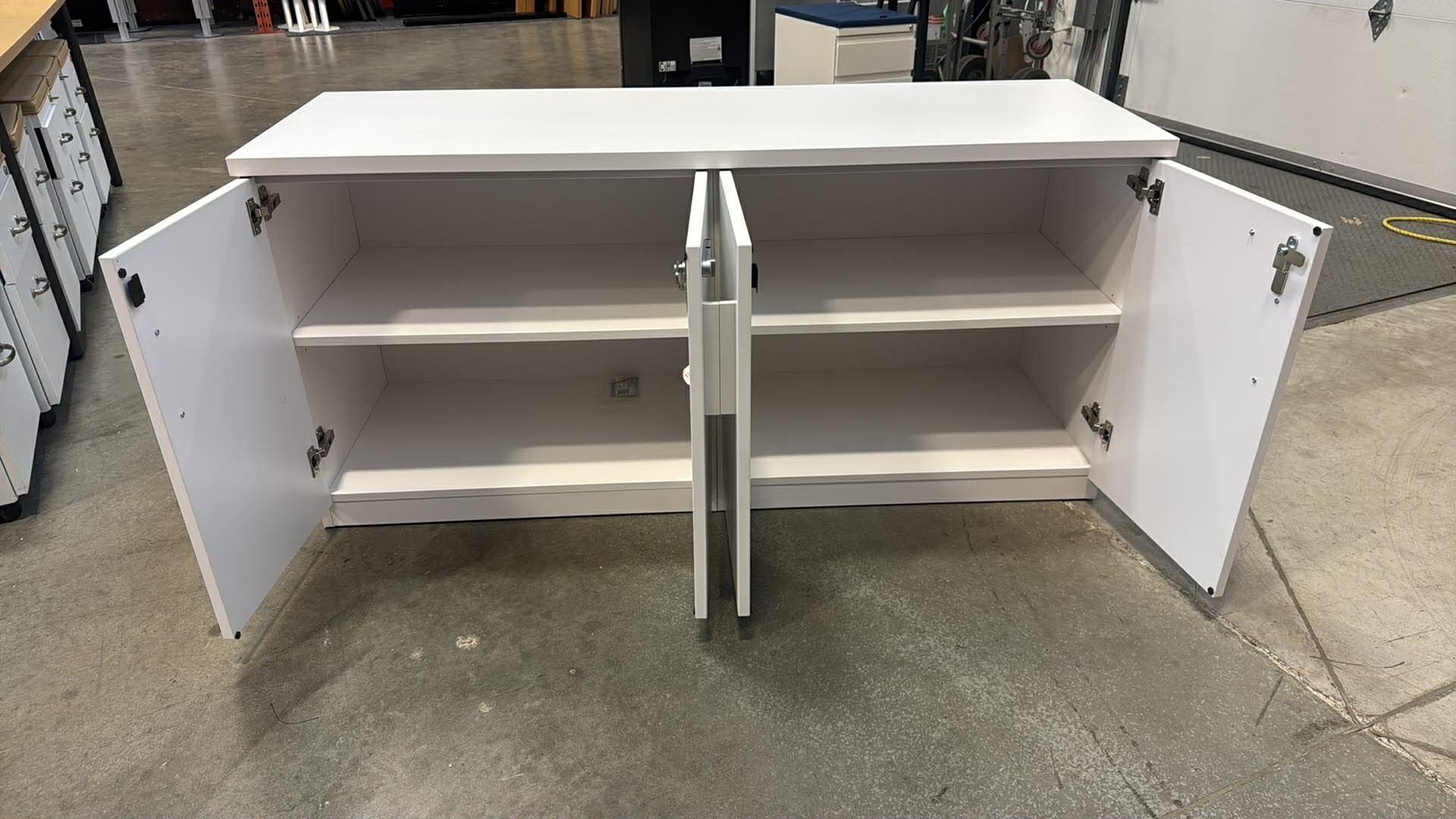 Ideal height for use as a credenza or shared storage unit